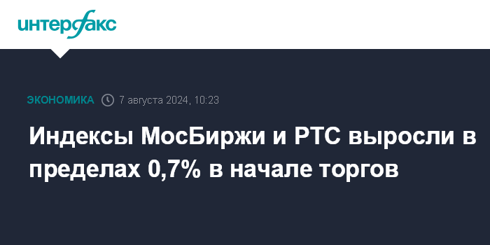 Индексы МосБиржи и РТС выросли в пределах 0,7% в начале торгов
