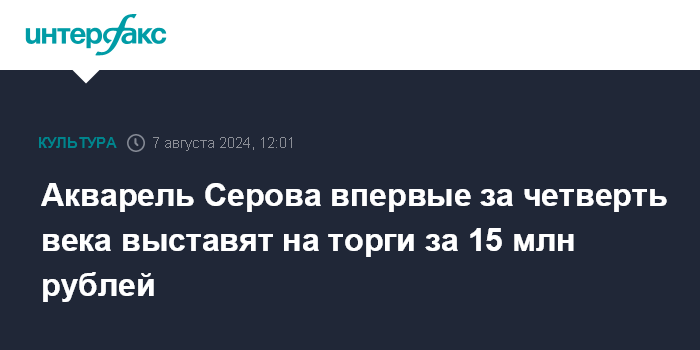 Акварель Серова впервые за четверть века выставят на торги за 15 млн рублей