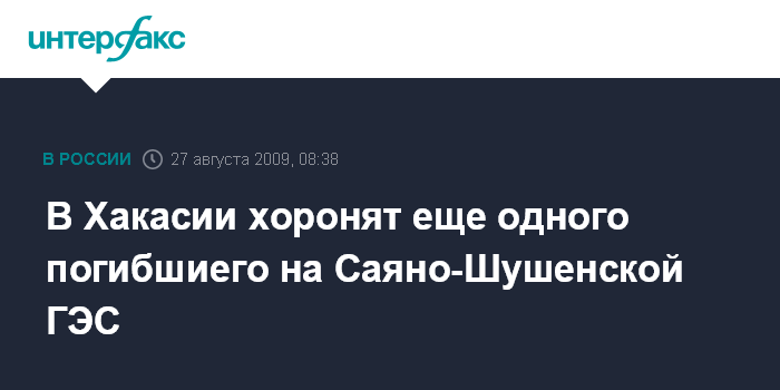 Черемушки. 27 августа. INTERFAX.RU - Тело еще одного погибшего на Саяно-Шушенской ГЭС будет предано земле в четверг в поселке Черемушки (Хакасия). Как передает корреспондент агентства "Интерфакс-Сибирь", в настоящее время происходит прощание с погибшим в ДК "Энергетик".