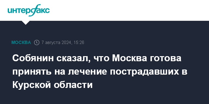 Собянин сказал, что Москва готова принять на лечение пострадавших в Курской области