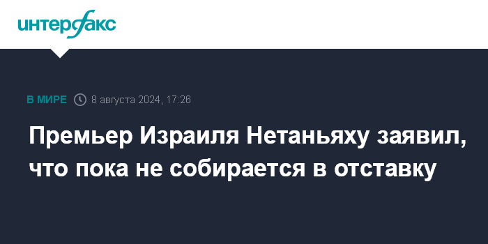 Москва. 8 августа. INTERFAX.RU - Премьер-министр Израиля Биньямин Нетаньяху намерен оставаться на своем посту до тех пор, пока он может приносить пользу своей стране, заявил он в интервью Time.