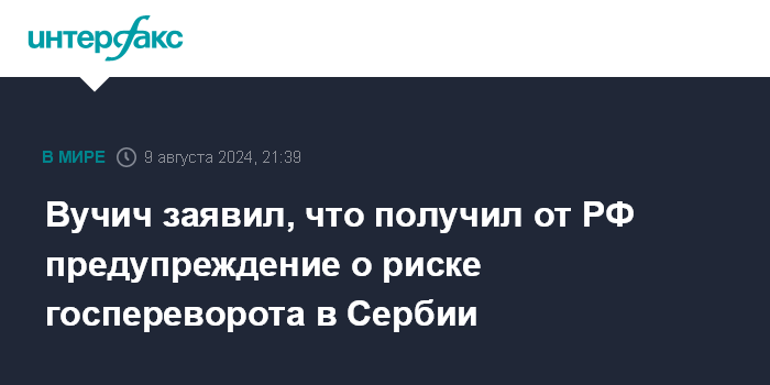 "Да, мы получили официальную информацию из РФ. Ее передали по официальным каналам. Мы с этим разбираемся, Наше Агентство безопасности и информации этим занимается", - приводит сербская газета Blic ответ Вучича на соответствующий вопрос журналиста.