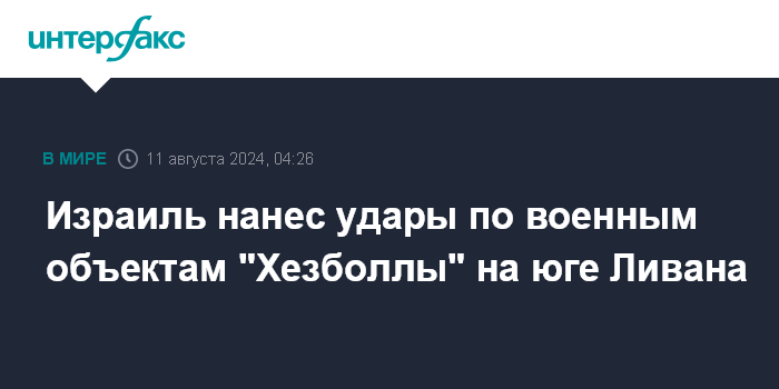 Москва. 11 августа. INTERFAX.RU - Армия обороны Израиля (ЦАХАЛ) сообщила, что атаковала в субботу вечером военные объекты движения "Хезболла" на территории Ливана.