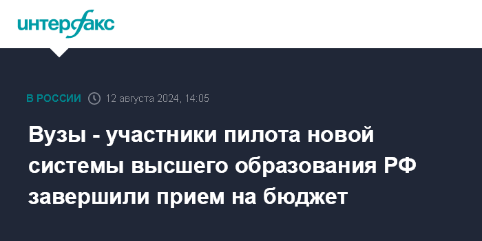 Вузы - участники пилота новой системы высшего образования РФ завершили прием на бюджет