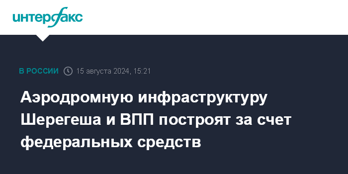 Москва. 15 августа. INTERFAX.RU - Аэродромную инфраструктуру и взлетно-посадочную полосу для проектируемого аэропорта в Шерегеше будут строить за счет федерального финансирования, сообщил врио губернатора Кемеровской области Илья Середюк.