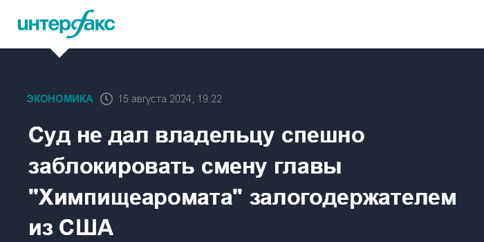 Суд не дал владельцу спешно заблокировать смену главы "Химпищеаромата" залогодержателем из США