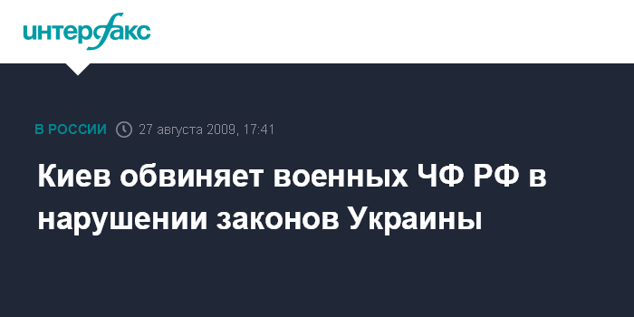 Киев. 27 августа. INTERFAX.RU - Представитель МИД Украины обвинил Черноморский флот России в грубом нарушении украинского законодательства и базовых двусторонних соглашений.