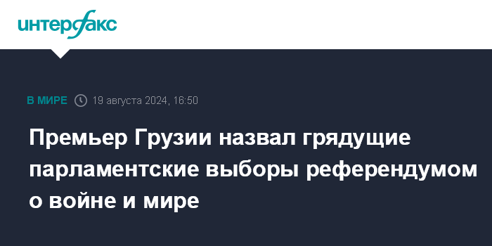 Премьер Грузии назвал грядущие парламентские выборы референдумом о войне и мире