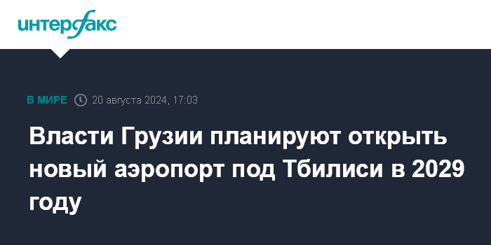 Власти Грузии планируют открыть новый аэропорт под Тбилиси в 2029 году