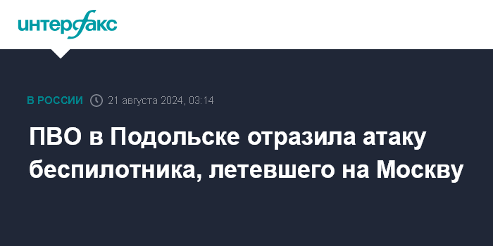 "Силами ПВО Минобороны в городском округе Подольск отражена атака беспилотника, летевшего на Москву", - написал он в своем телеграм-канале в ночь на среду.