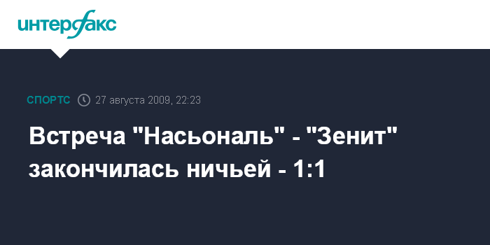 Встреча "Насьональ" - "Зенит" закончилась ничьей - 1:1