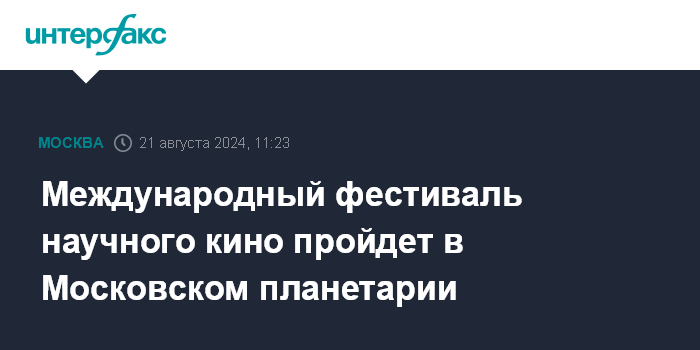 Москва. 21 августа. INTERFAX.RU - Московский международный фестиваль научного кино пройдет в Московском планетарии с 7 по 10 ноября, мероприятие будет приурочено к 95-летию площадки, сообщила заммэра Наталья Сергунина.