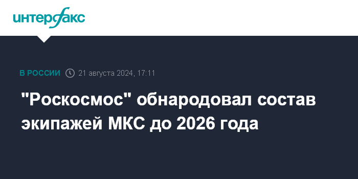 Москва. 21 августа. INTERFAX.RU - "Роскосмос" назвал экипажи, которые отправятся на Международную космическую станцию на пилотируемых кораблях "Союз МС" в 2025-2026 годах.
