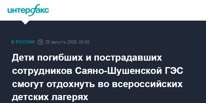 Дети погибших и пострадавших сотрудников Саяно-Шушенской ГЭС смогут отдохнуть во всероссийских детских лагерях