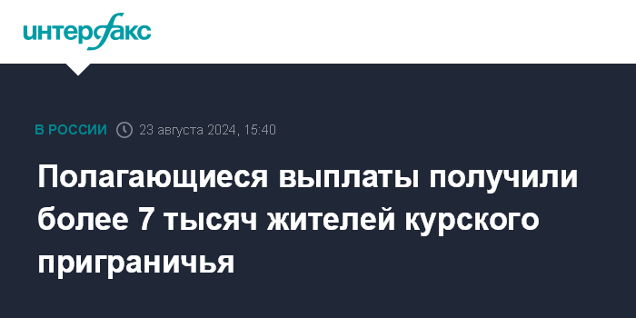Москва. 23 августа. INTERFAX.RU - Более 7 тысяч жителей приграничных районов Курской области, вынужденно покинувшие свои дома, получили причитающиеся им выплаты, сообщил на брифинге представитель МЧС России Артем Шаров.
