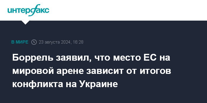 Москва. 23 августа. INTERFAX.RU - Итоги конфликта на Украине станут определяющими для геополитического будущего Евросоюза, заявил в пятницу глава дипломатии ЕС Жозеп Боррель.