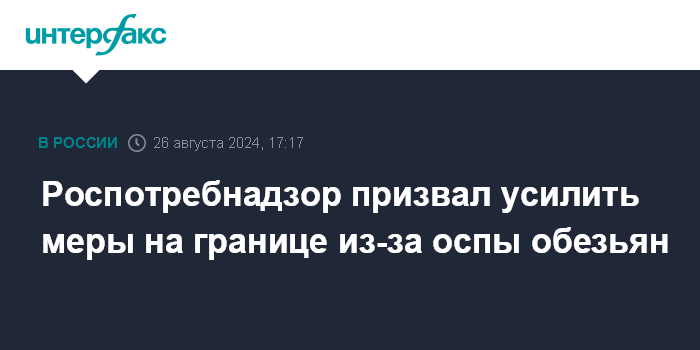 14 августа глава ВОЗ Тедрос Адханом Гебрейесус объявил чрезвычайную ситуацию в области общественного здравоохранения в связи с распространением оспы обезьян. В Роспотребнадзоре тогда же заявили, что в России отсутствует угроза распространения оспы обезьян, все необходимые меры для выявления инфекции принимаются в РФ на системной основе.