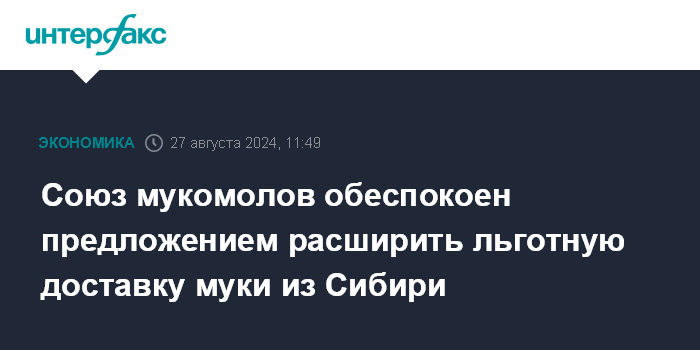 В середине августа в электронной базе данных Госдумы были опубликованы рекомендации комитета по аграрным вопросам правительству рассмотреть возможность введения льгот на транспортировку муки из Сибири в направлении станций всех регионов России. Сейчас такая льгота для сибирских мукомолов действует только для поставок на Дальний Восток. Льготы на перевозку муки (пшеничной, ржаной, ржано-пшеничной) были введены в ноябре 2022 года.