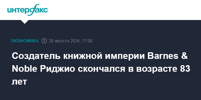 Создатель книжной империи Barnes & Noble Риджио скончался в возрасте 83 лет