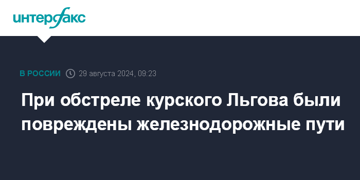 Москва. 29 августа. INTERFAX.RU - В Курской области был обстрелян Льгов, повреждены железнодорожные пути станции "Льгов Киевский", сообщил глава города Алексей Клемешов.