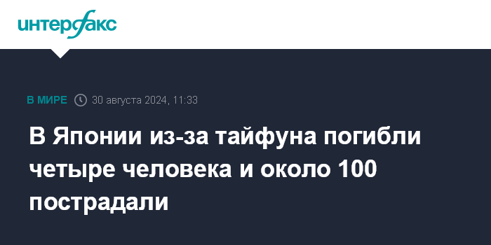 В Японии из-за тайфуна погибли четыре человека и около 100 пострадали