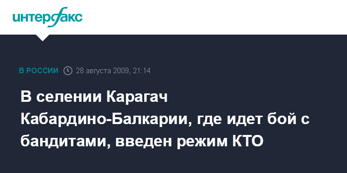 Нальчик. 28 августа. INTERFAX.RU - Режим контртеррористической операции (КТО) введен вечером в пятницу в селении Карагач Прохладненского района Кабардино-Балкарии.