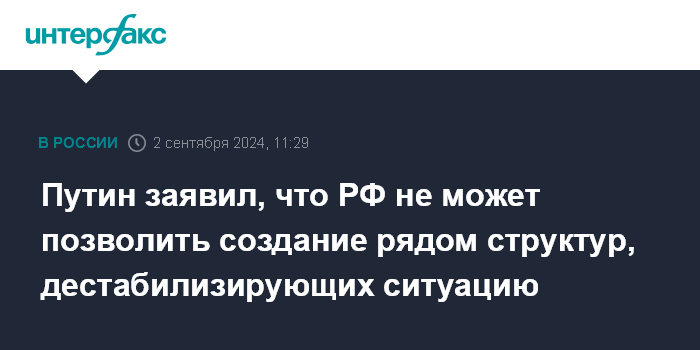Путин заявил, что РФ не может позволить создание рядом структур, дестабилизирующих ситуацию