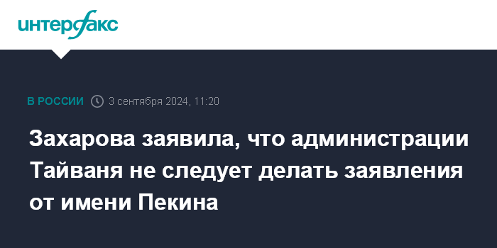 Захарова заявила, что администрации Тайваня не следует делать заявления от имени Пекина