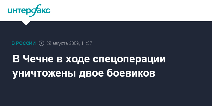 Москва. 29 августа. INTERFAX.RU - В ходе спецоперации в Чечне сотрудники правоохранительных органов уничтожили двух участников бандформирований, личности которых в настоящее время устанавливаются, сообщили "Интерфаксу" в субботу в пресс-службе МВД республики.