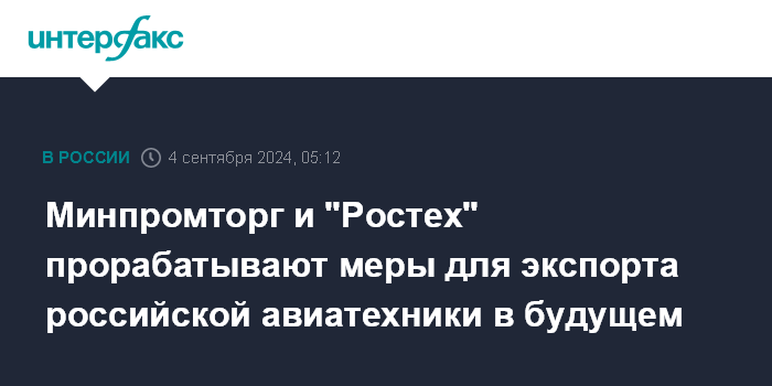 Минпромторг и "Ростех" прорабатывают меры для экспорта российской авиатехники в будущем