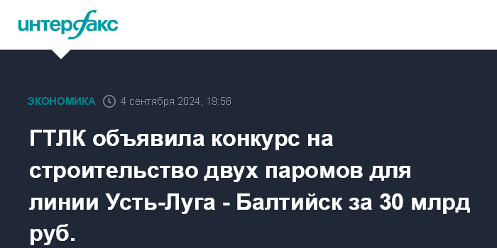 ГТЛК объявила конкурс на строительство двух паромов для линии Усть-Луга - Балтийск за 30 млрд руб.