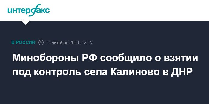 Москва. 7 сентября. INTERFAX.RU - Российские войска взяли под контроль село Калиново в ДНР, заявили в субботу в Минобороны.