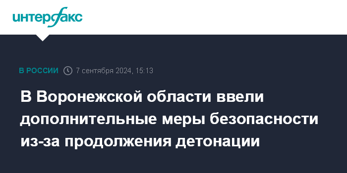 В Воронежской области ввели дополнительные меры безопасности из-за продолжения детонации