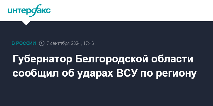 Губернатор Белгородской области сообщил об ударах ВСУ по региону