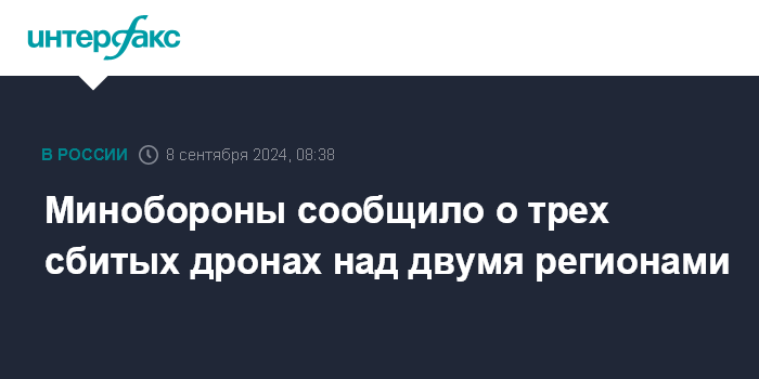 Минобороны сообщило о трех сбитых дронах над двумя регионами