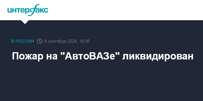Москва. 8 сентября. INTERFAX.RU - Пожарные ликвидировали возгорание на "АвтоВАЗе", сообщили "Интерфаксу" в пресс-службе МЧС по Самарской области в воскресенье.
