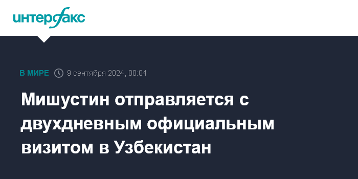 Мишустин отправляется с двухдневным официальным визитом в Узбекистан