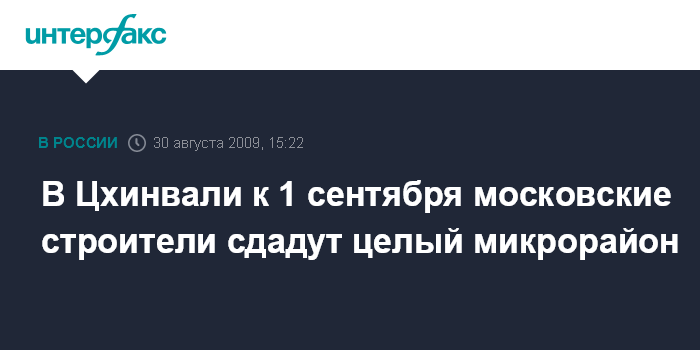 "Торжественное открытие микрорайона Московский намечено на 31 августа, в Цхинвали ожидается визит в этот день мэра Москвы Юрия Лужкова, который лично перережет символическую красную ленточку", - сказал собеседник агентства.