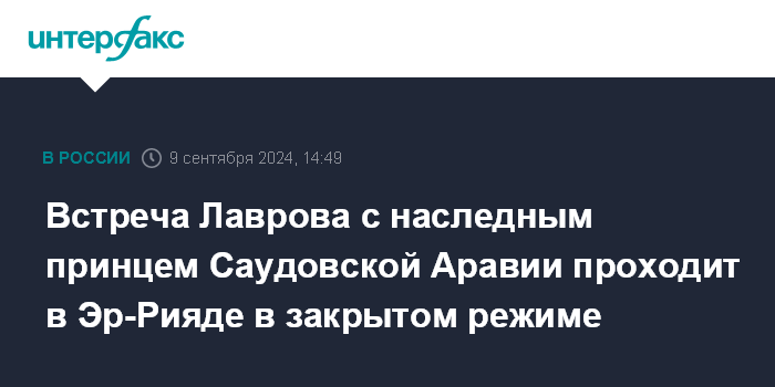 Встреча Лаврова с наследным принцем Саудовской Аравии проходит в Эр-Рияде в закрытом режиме