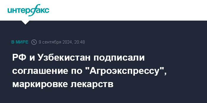 РФ и Узбекистан подписали соглашение по "Агроэкспрессу", маркировке лекарств