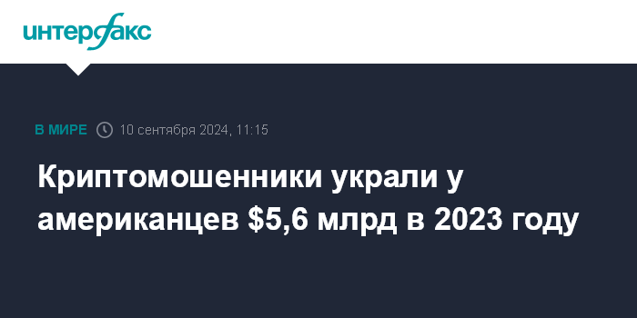 Москва. 10 сентября. INTERFAX.RU - Американцы потеряли более $5,6 млрд в мошеннических схемах с участием криптовалют в прошлом году, говорится в докладе Федерального бюро расследований (ФБР).