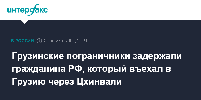 В ведомстве отмечают, что россиянин 25 августа въехал в Грузию с "оккупированной территории" через Цхинвали.