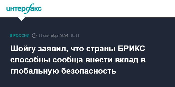Шойгу заявил, что страны БРИКС способны сообща внести вклад в глобальную безопасность