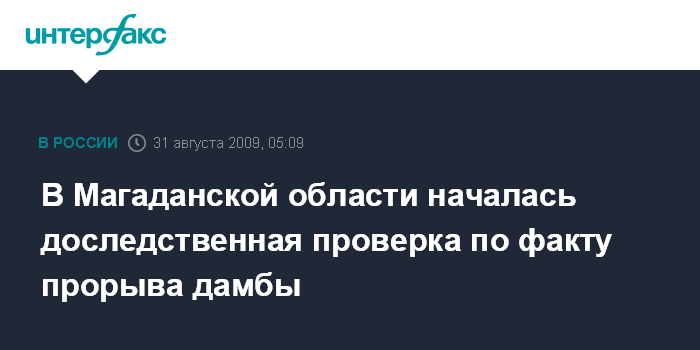 Как сообщалось ранее, 29 августа в результате залпового выброса воды из хвостохранилища Карамкенского ГОКа восемь частных домостроений в поселке Карамкен Хасынского района Магаданской области пришли в негодность, пострадал первый этаж двухэтажного восьмиквартирного дома. Всего от стихии пострадали 24 человека, один из них погиб, еще один числится пропавшим без вести.