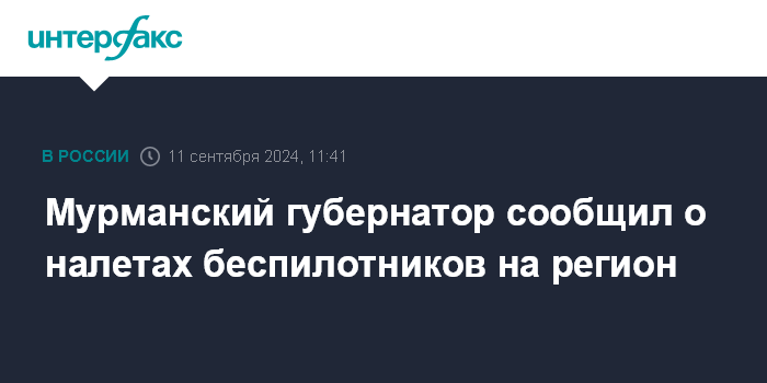 Москва. 11 сентября. INTERFAX.RU - Губернатор Мурманской области Андрей Чибис подтвердил, что регион подвергся атаке беспилотников.