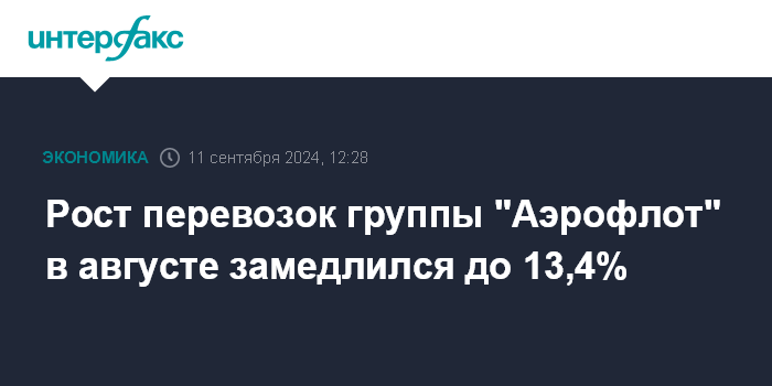 Рост перевозок группы "Аэрофлот" в августе замедлился до 13,4%