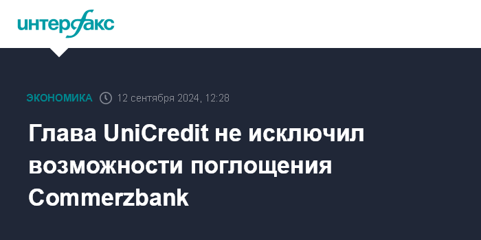 Москва. 12 сентября. INTERFAX.RU - Итальянский UniCredit SpA сохраняет гибкость в принятии решений относительно будущих изменений своей доли в Commerzbank AG, но не исключает возможности поглощения германского банка.