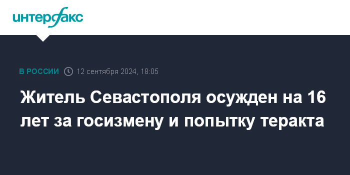 Житель Севастополя осужден на 16 лет за госизмену и попытку теракта