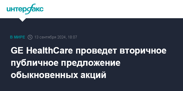 GE HealthCare проведет вторичное публичное предложение обыкновенных акций