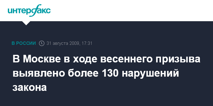 Москва. 31 августа. INTERFAX.RU - Прокуратура Москвы выявила многочисленные нарушения федерального закона "О воинской обязанности и военной службе" в ходе весеннего призыва 2009 года в столице.